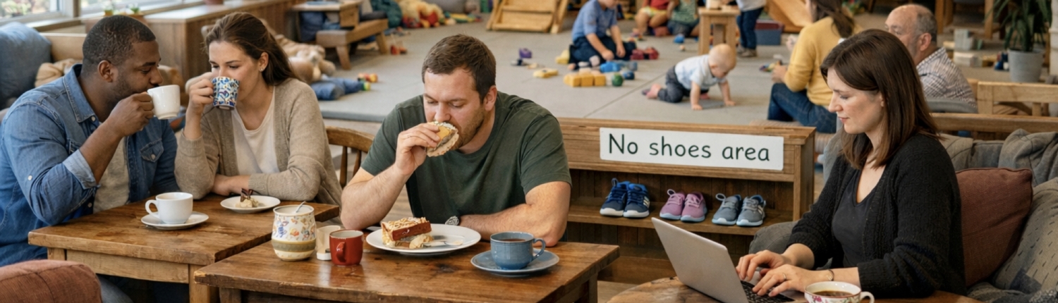 Derfor vil et internationalt tilflytterpar – Natasa og Angel, der oprindeligt kommer fra hhv. Kroatien og Bulgarien – åbne en ny familievenlig café, der skal tilbyde et hyggeligt indendørs-miljø, hvor forældre kan slappe af og netværke, mens børnene kan lege med legetøj, bøger og andre børn i et sikkert, afgrænset og synligt legehjørne. Legehjørnet er skofrit og uden madforbrug af hensyn til børn med fødevareallergi. Caféen serverer kaffe, te, øl, juice, snacks samt børnevenlige drikke som varm mælk (babyccino).